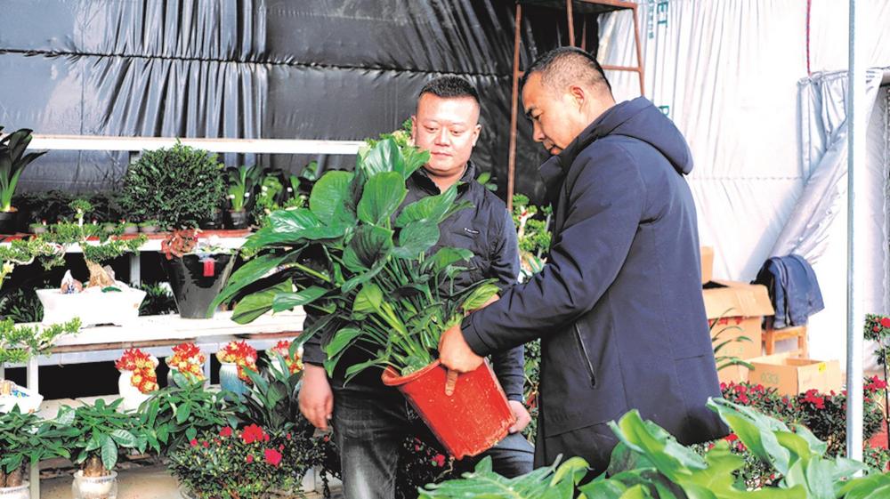 随着新春脚步临近,临泽县年宵花市场进入销售旺季,各色花卉争奇斗艳、芬芳四溢,吸引众多市民前来选购。刘 颖 摄