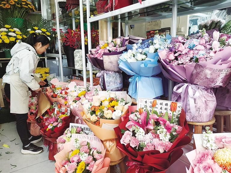 随着春暖花开的临近,女性节日消费热潮也在提前预热。在雁滩花暖阁鲜花店,老板郑丽花正忙着打包准备配送的花材。她告诉记者,针对即将到来的“三八节”,她特意推出了传统的团购活动,转而筹备一场“三八女神节沙龙”。