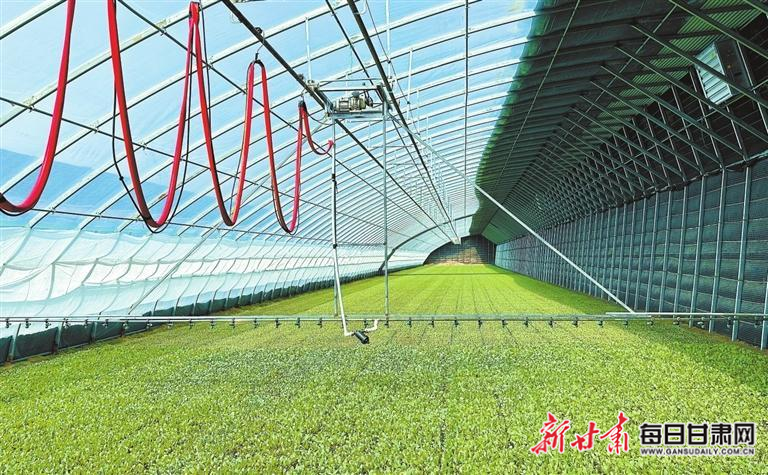 享受科技红利的,不只是大田农业。在肃州区银达戈壁生态产业园的温室大棚里,全自动播种机在工作人员的简单操控下匀速运转,一粒粒种子被均匀嵌入育苗盘,嫩绿的种苗破土而出,叶片上的露珠映着春日的光,一派科技备耕的热闹景象。